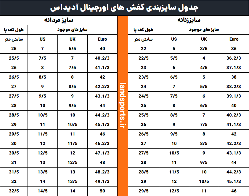 این کفش دارای فرم استاندارد آدیداس است. در صورتی که بین دو سایز هستید، توصیه میشود نیمسایز بزرگتر را انتخاب کنید.