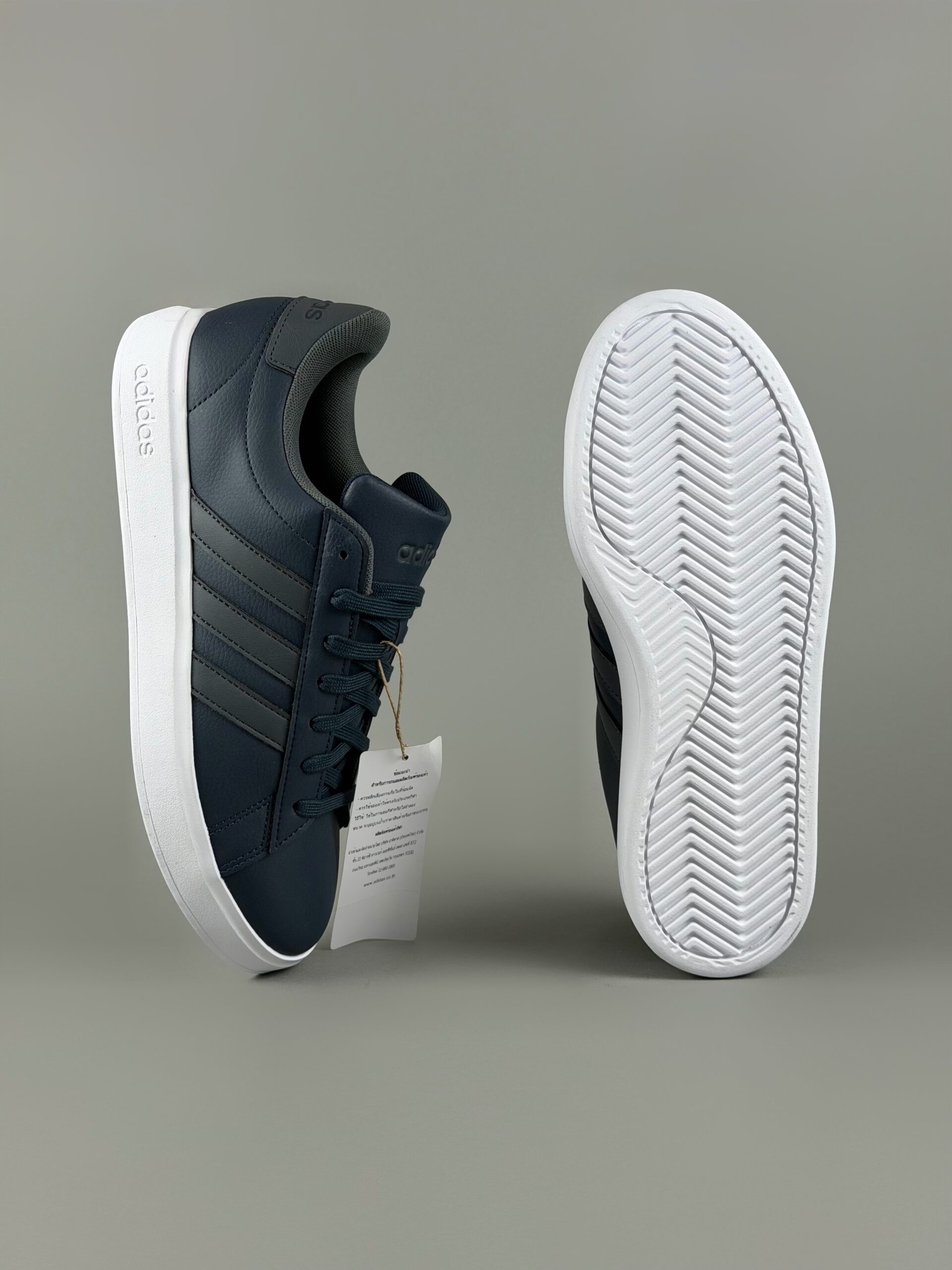 طراحی کلاسیک: دارای ظاهر کلاسیک و تمیز مدل Grand Court آدیداس با سه خط معروف آدیداس (3-Stripes) در کنارهها است.