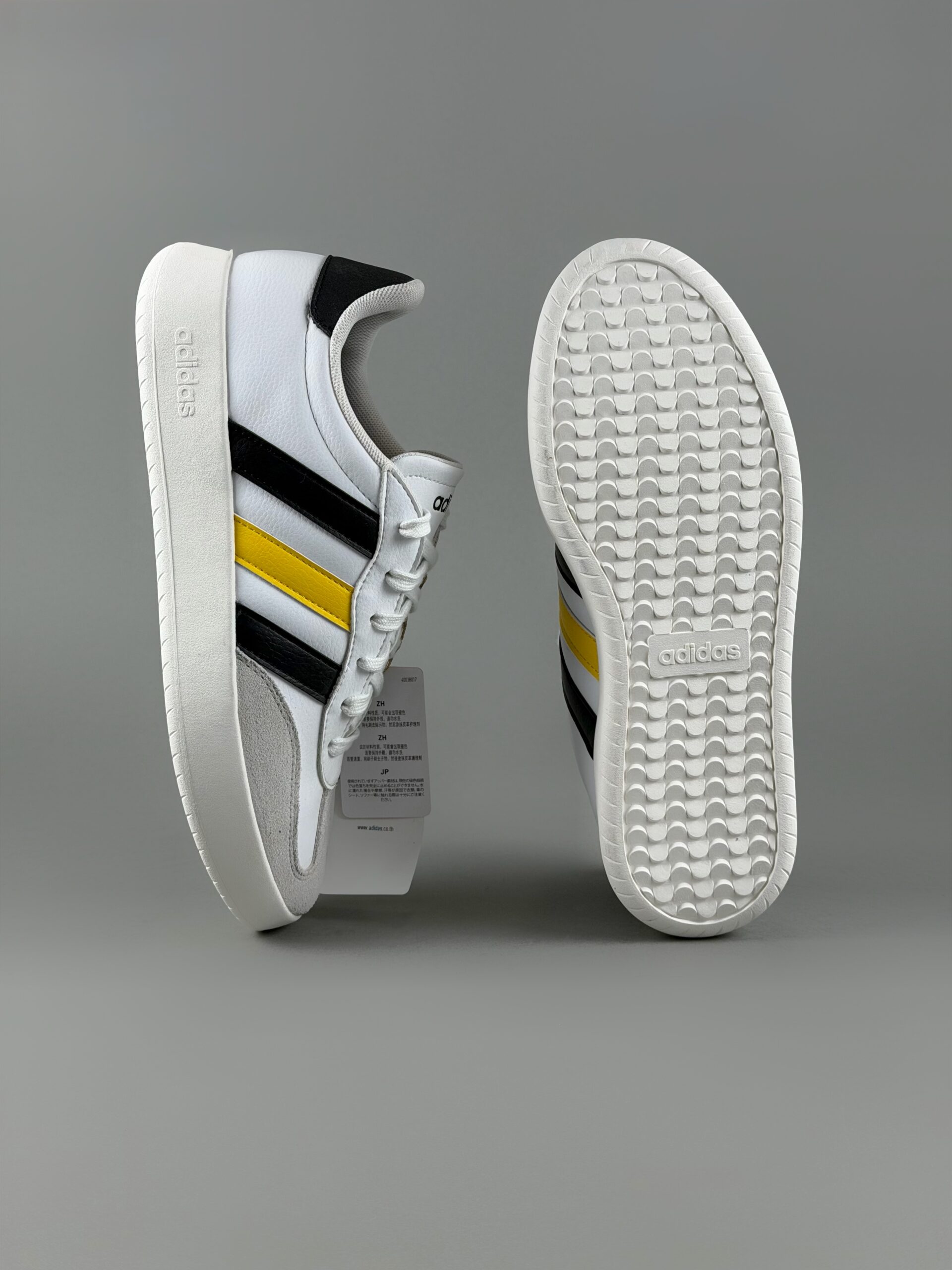 سه نوار معروف آدیداس در رنگهای مشکی و زرد برای جلوهای چشمگیر و خاص.
