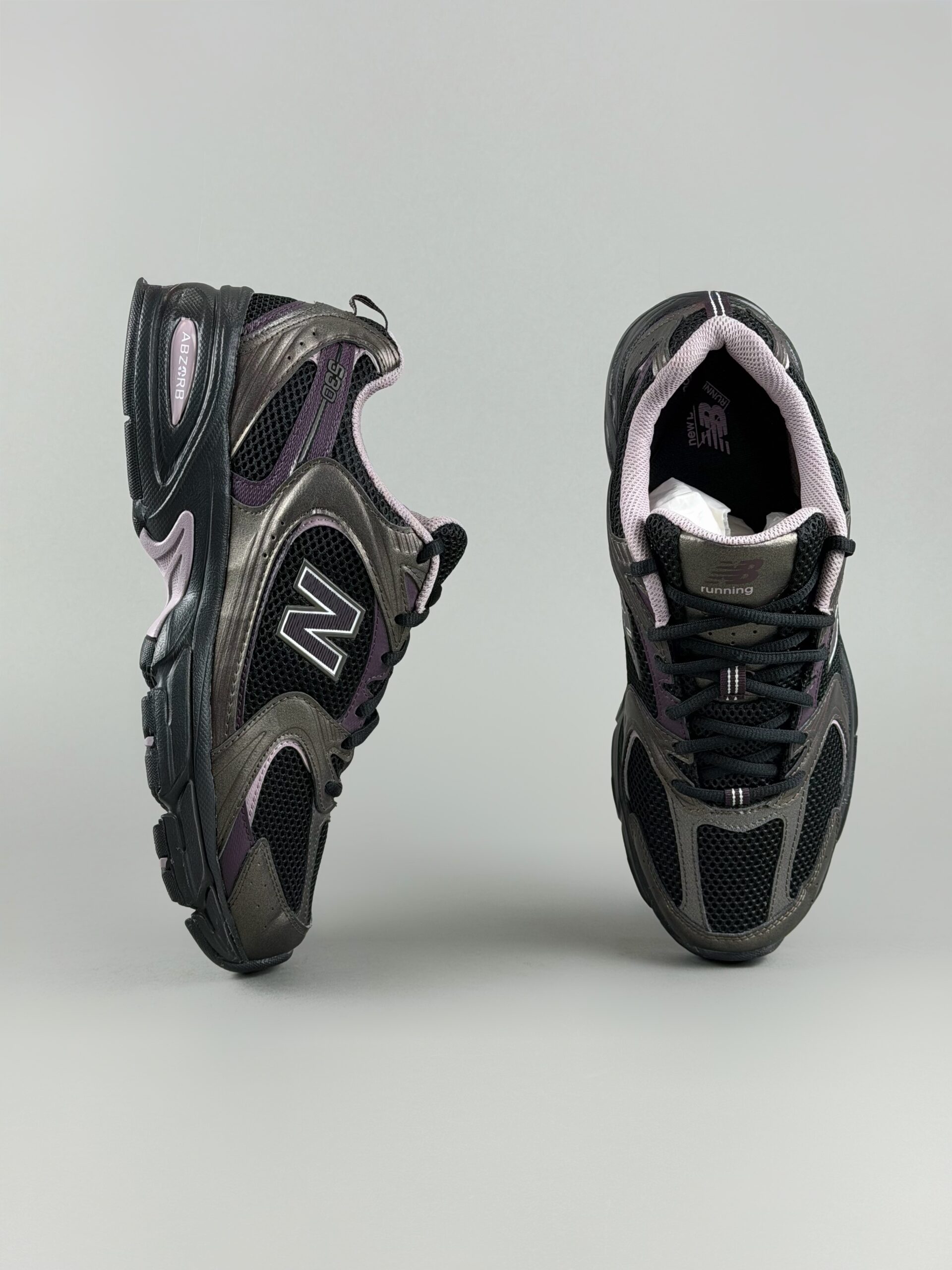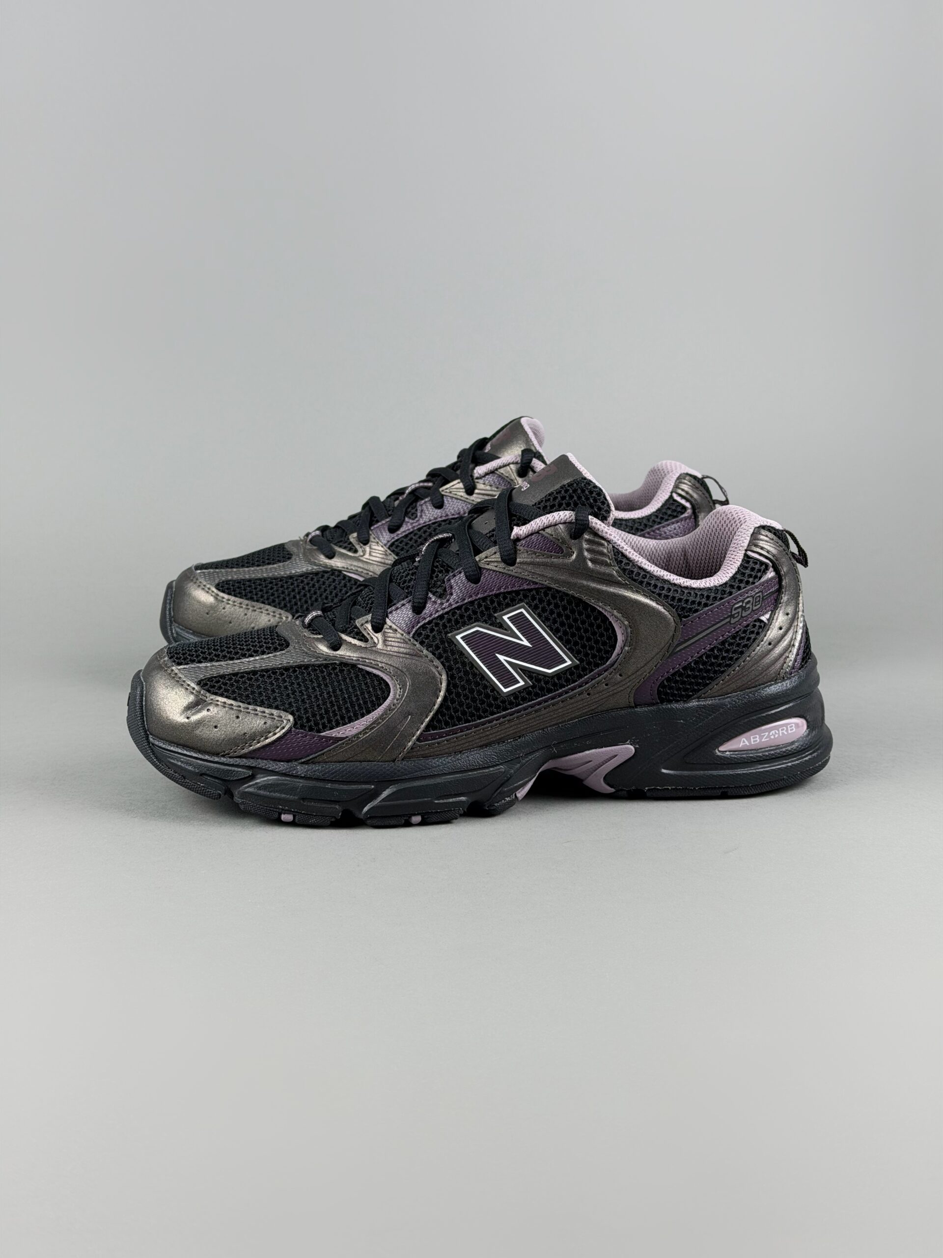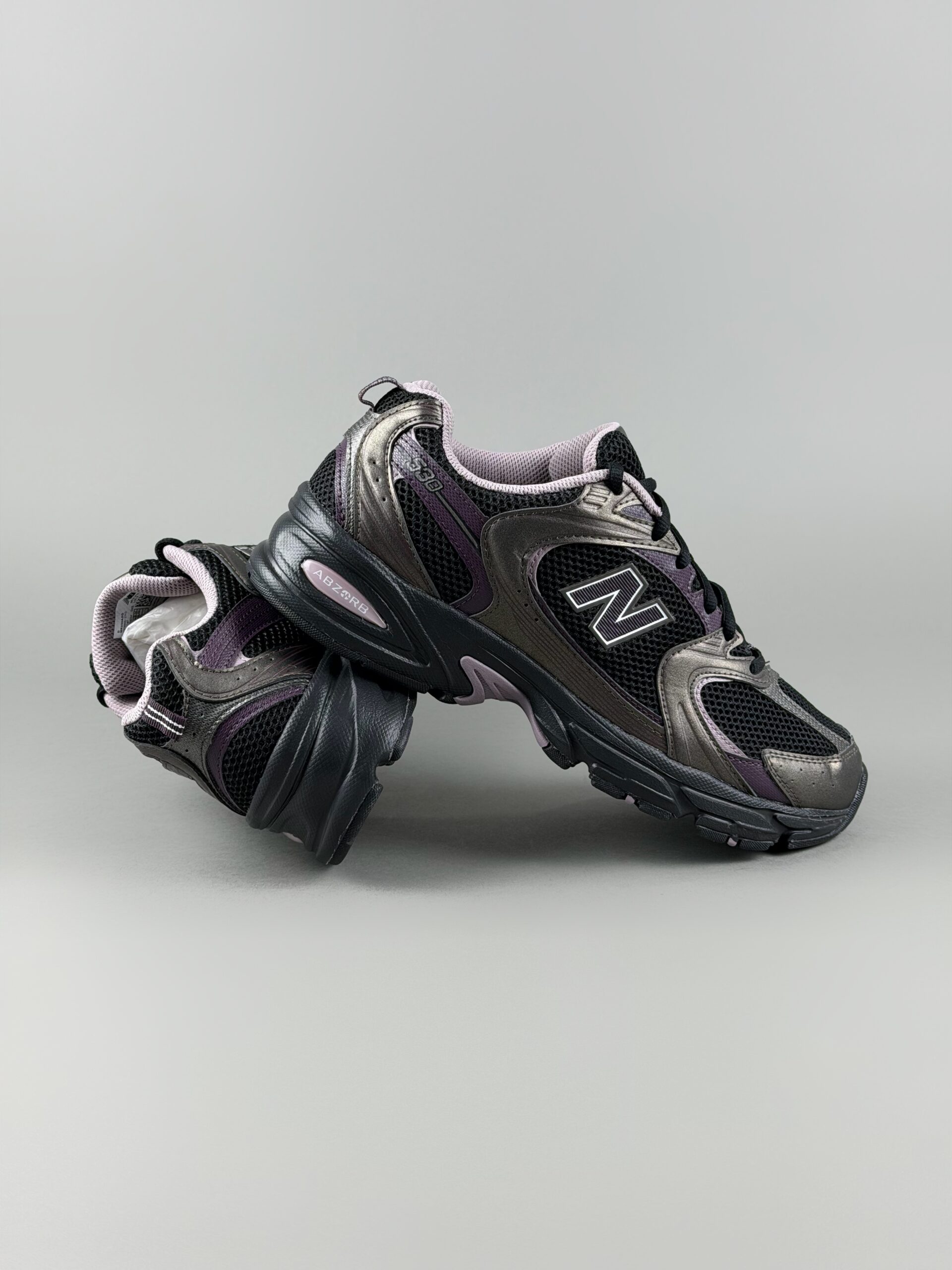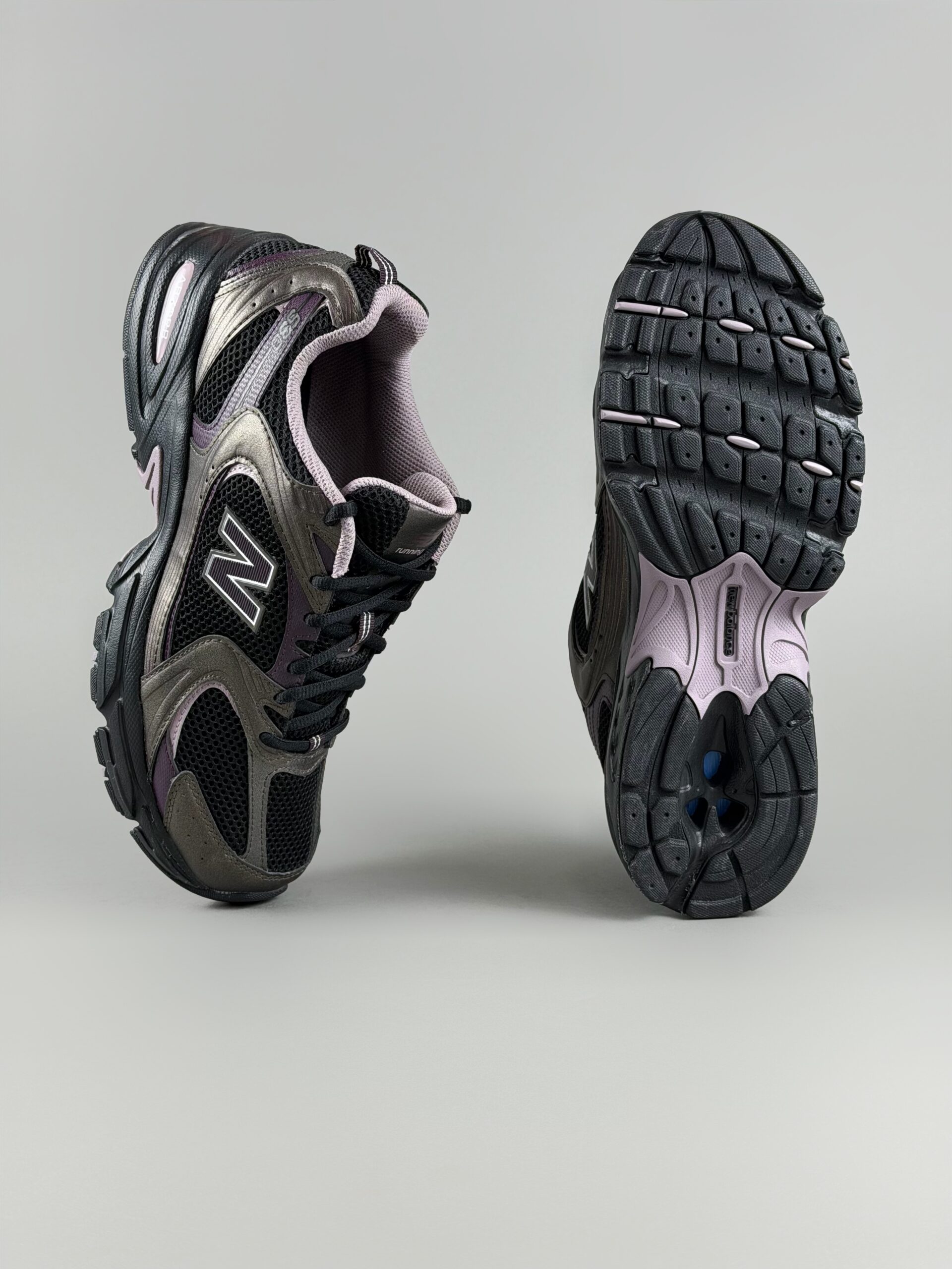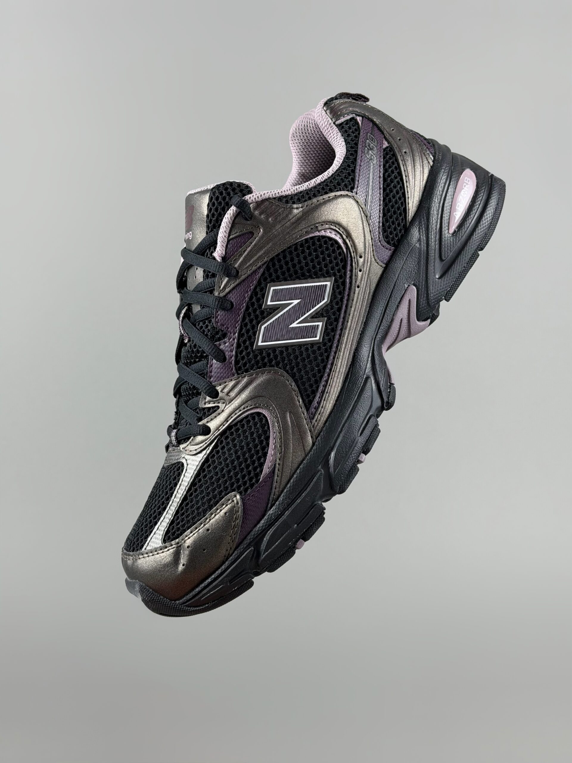 New Balance 530 ؛ اما نه اون رنگهای معمولی که پای همه میبینی! این ترکیب رنگ مشکی، دودی متالیک و یاسی (Mauve)، مخصوص کسایی هست که میخوان استایل «رترو» داشته باشن ولی با یه تم دارک و خاص.